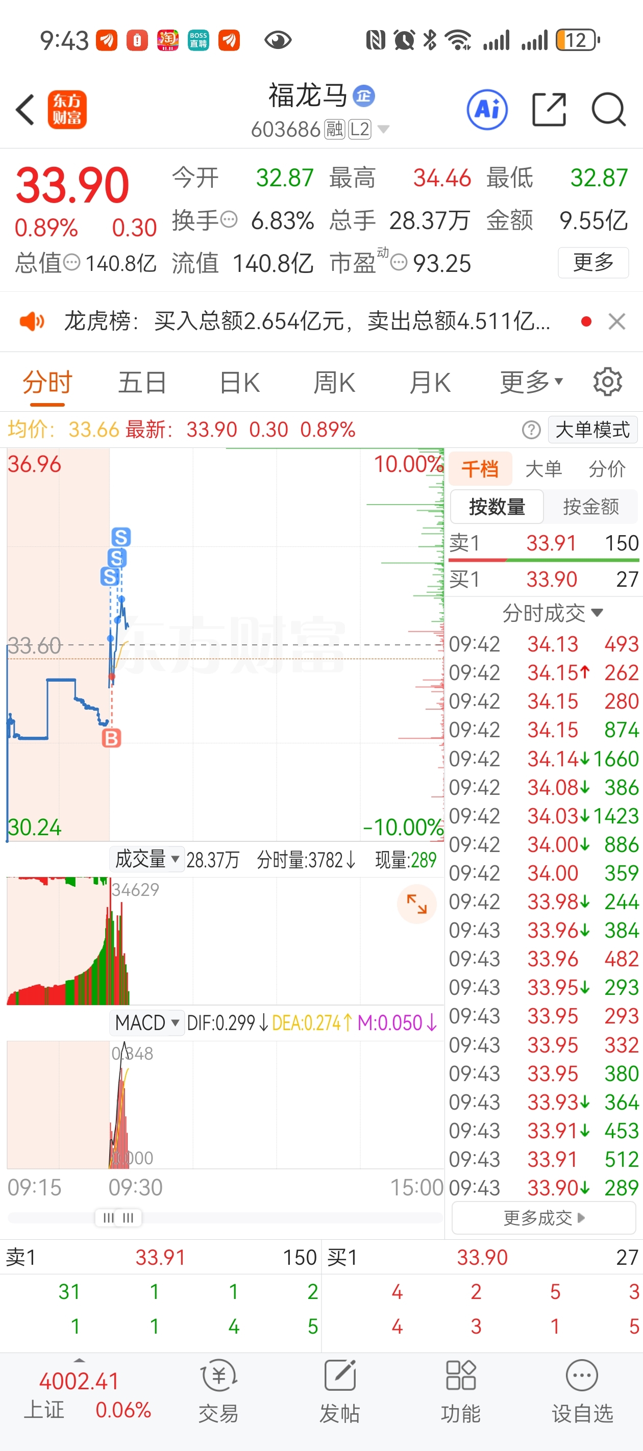 $福龙马(SH603686)$ 快涨停,我清了4/3