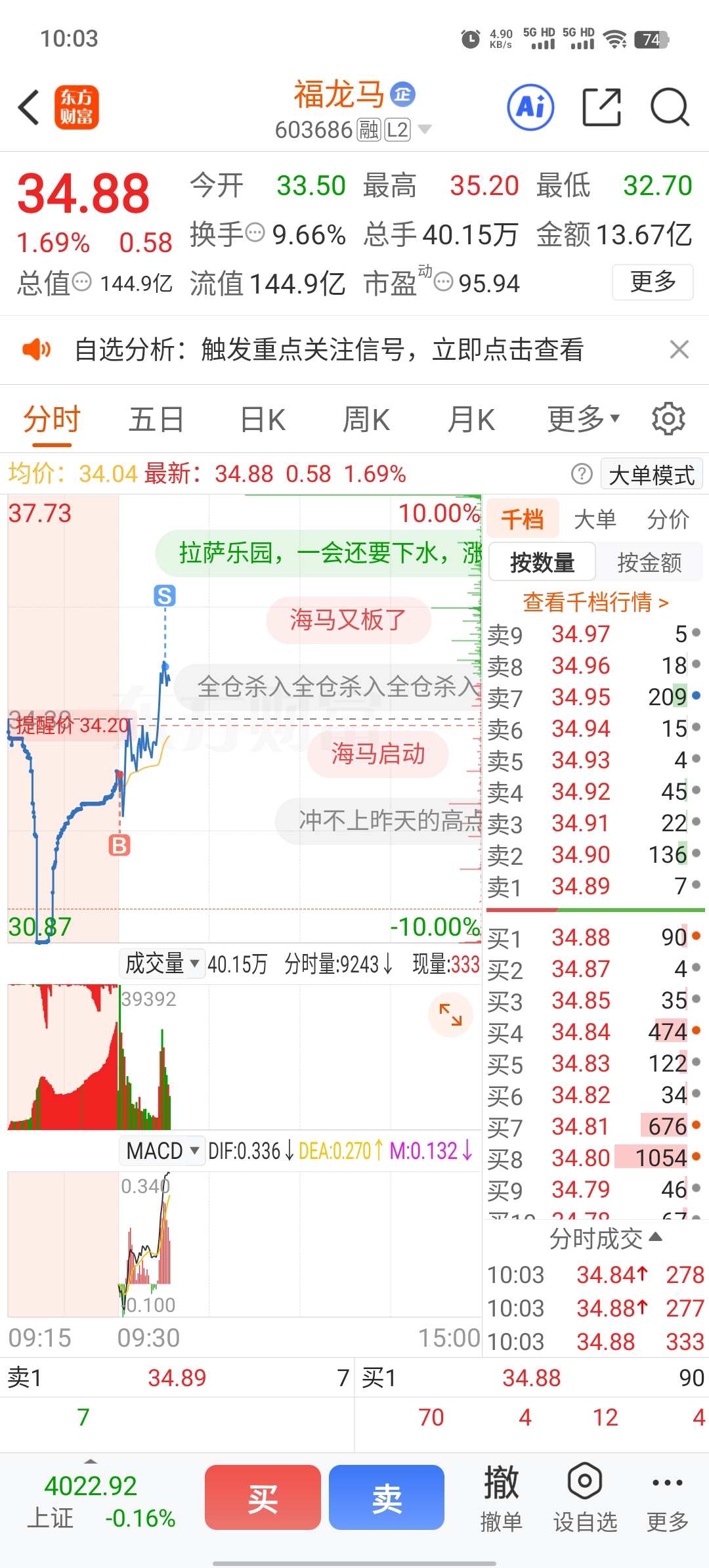 $福龙马(SH603686)$ 不要信,每天套利就很好了,不要追高,最近亏麻了,爆头几次回回本