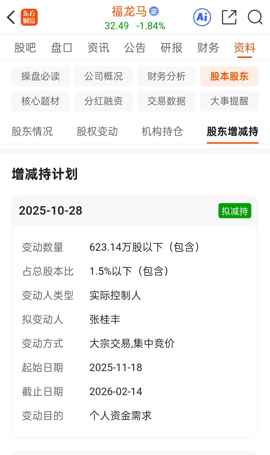 $福龙马(SH603686)$ 董事长都高位套现了,还有什么好期待的