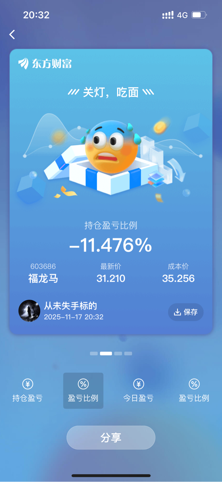 $福龙马(SH603686)$ 周五买的,就是明天涨停也不行,可恶的马子,中马亏30个点,华建亏40个点,买啥啥跌