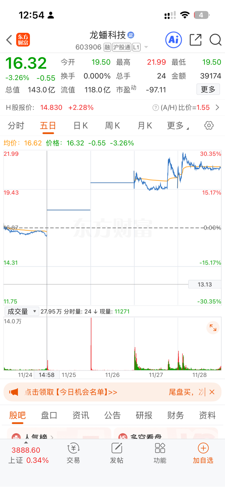 $福龙马(SH603686)$ 各位醒醒吧,不要以为龙蟠科技跌了22%的时候,突然450亿大单连续两个板,市值从112亿到143亿,福龙马最近也是跌了25%,331亿大单,就认为吃两个板赶紧跑了,这福龙马叠加的buff《福建海南消防车机器人ai无人驾驶》,有人恐高是很正常的,轮流吃2个板就走,我不怕高,我12月29日再走,剩下30日,31日两个板留给兄弟们