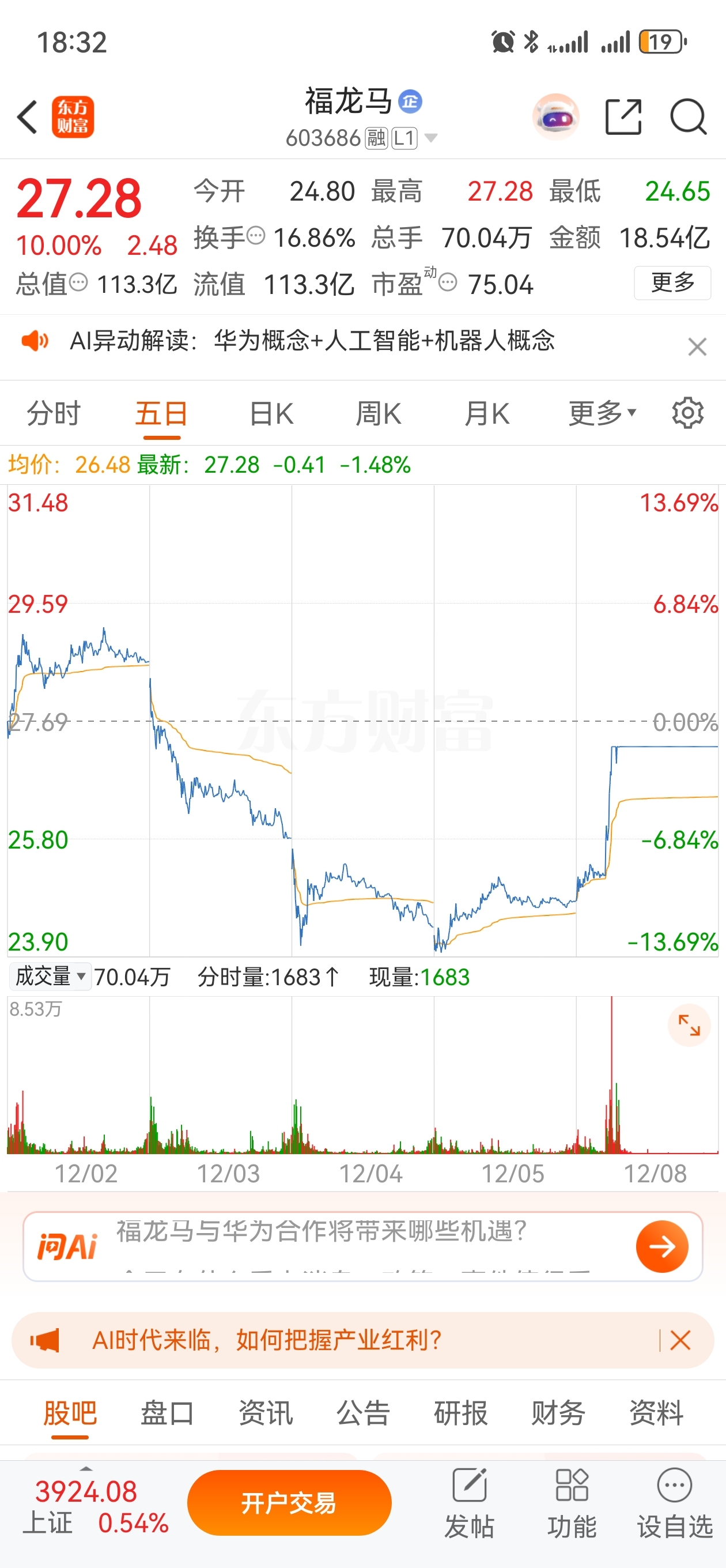 $福龙马(SH603686)$ 不知道你们在开心啥?看近5日都还是跌的,加上乱动还低位割了肉。没人赚钱吧??