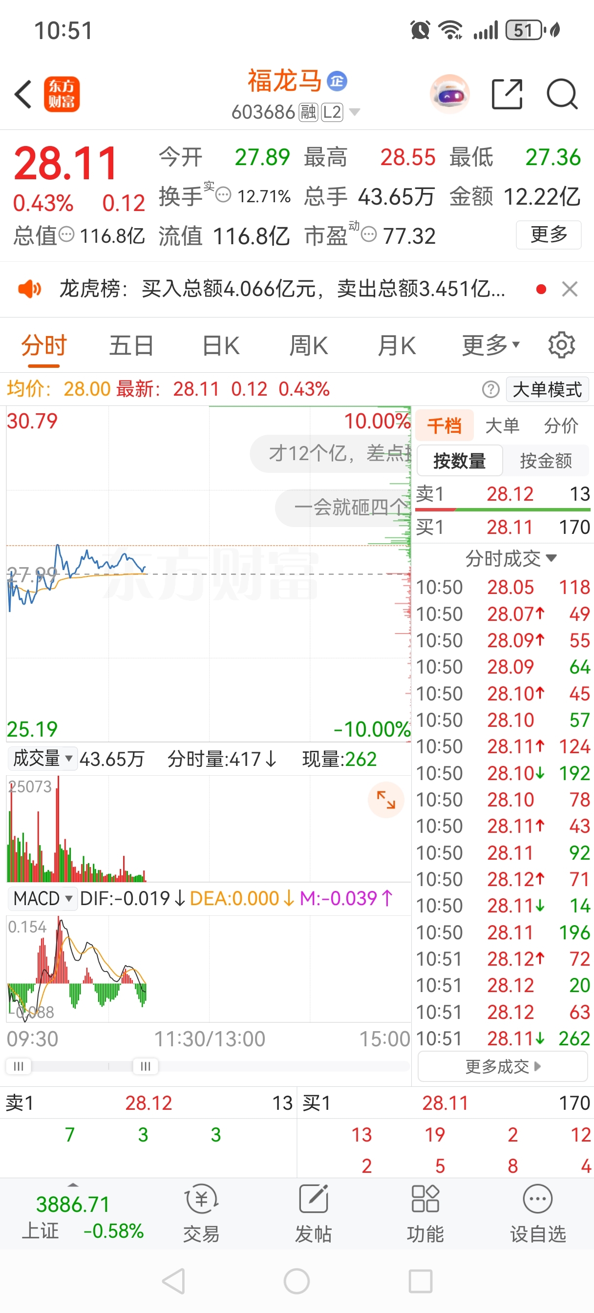 $福龙马(SH603686)$ 我踏马的就不该买,我买了后,龙马就沿着我买的成本线和零轴上下震荡