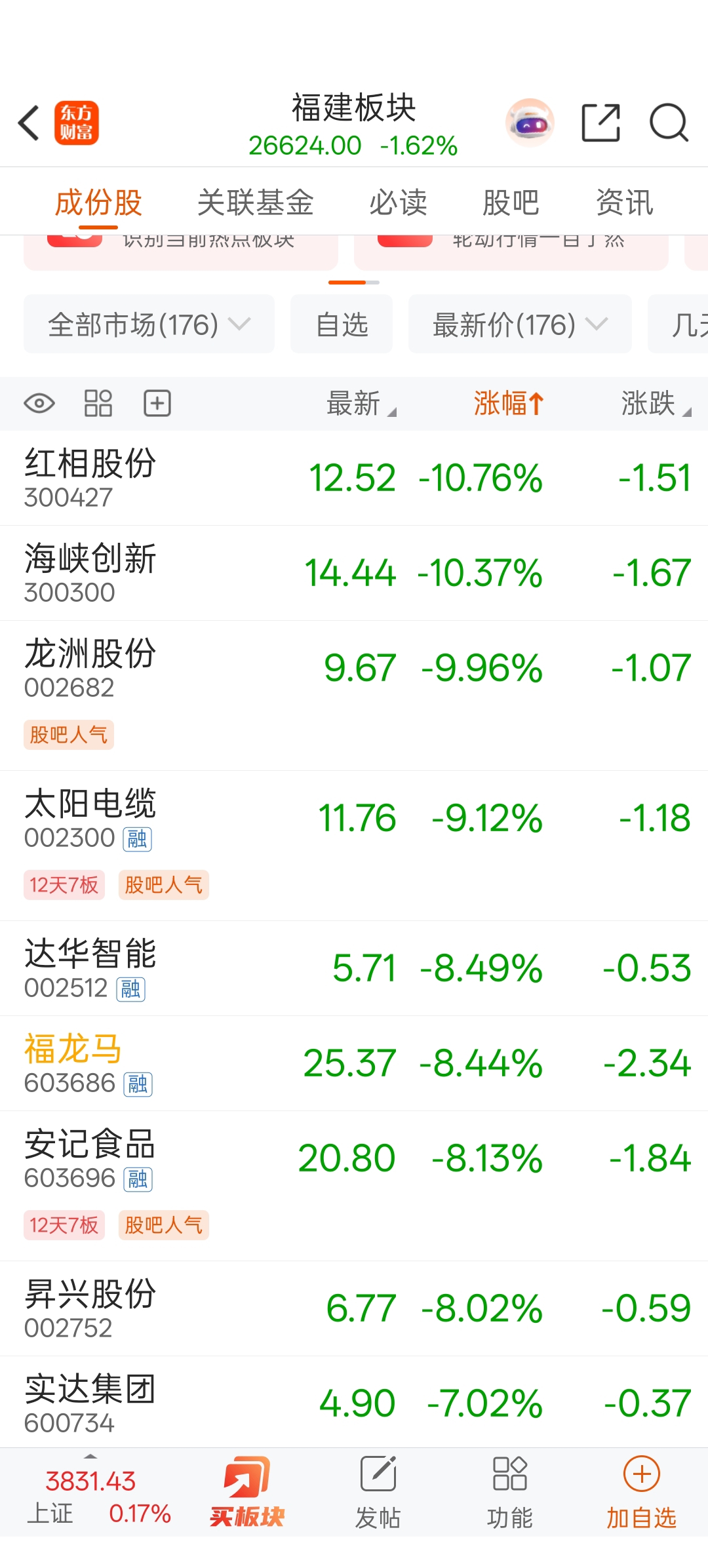 福建板块大跌,触发量化,没有办法了,只能扛着了,后面会反弹的
