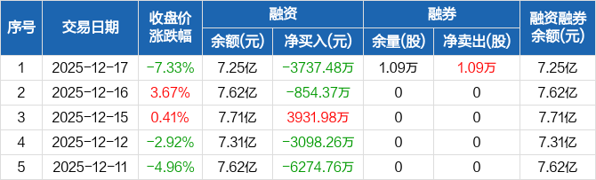 福龙马:融资净偿还3737.48万元,融资余额7.25亿元(12-17)
