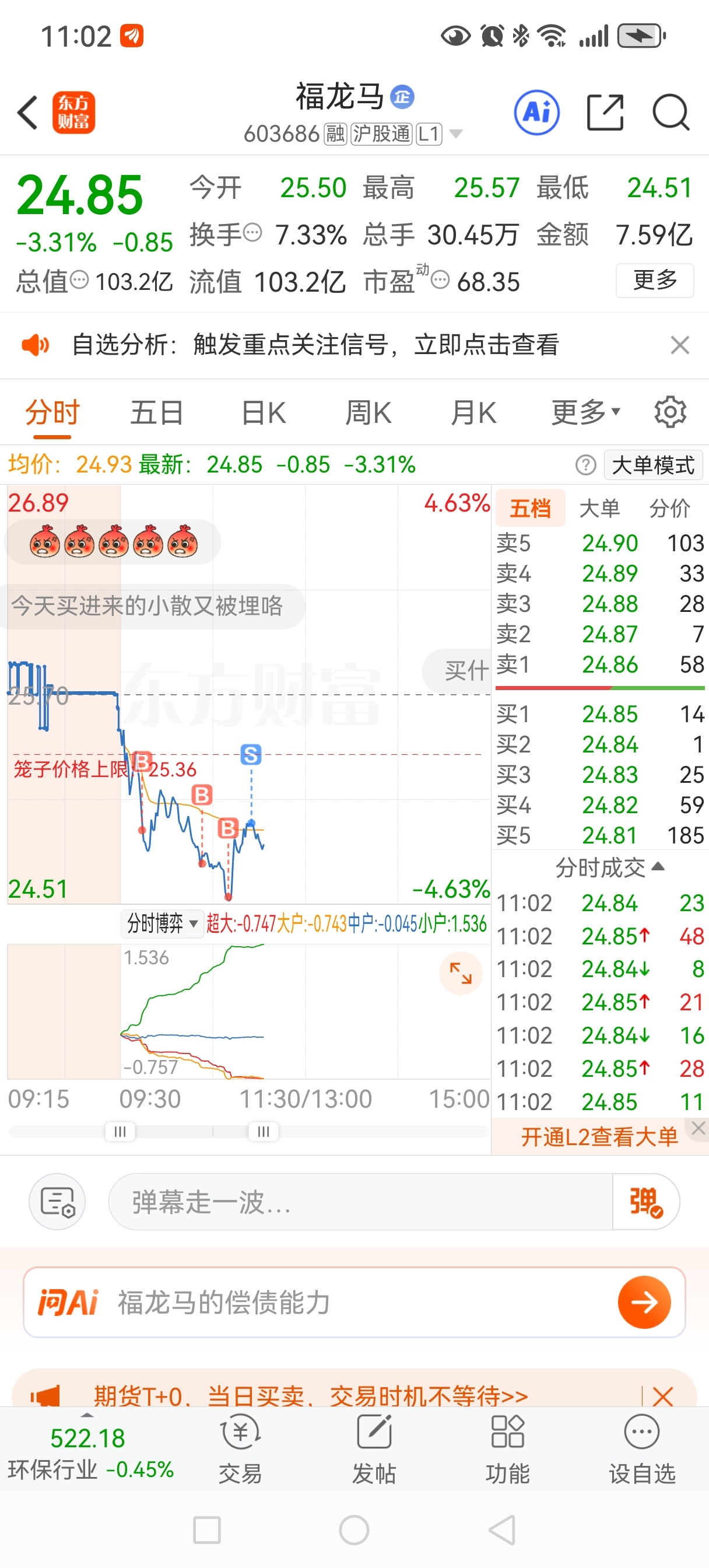$福龙马(SH603686)$ 管他涨嘛降哦,做T做起走。