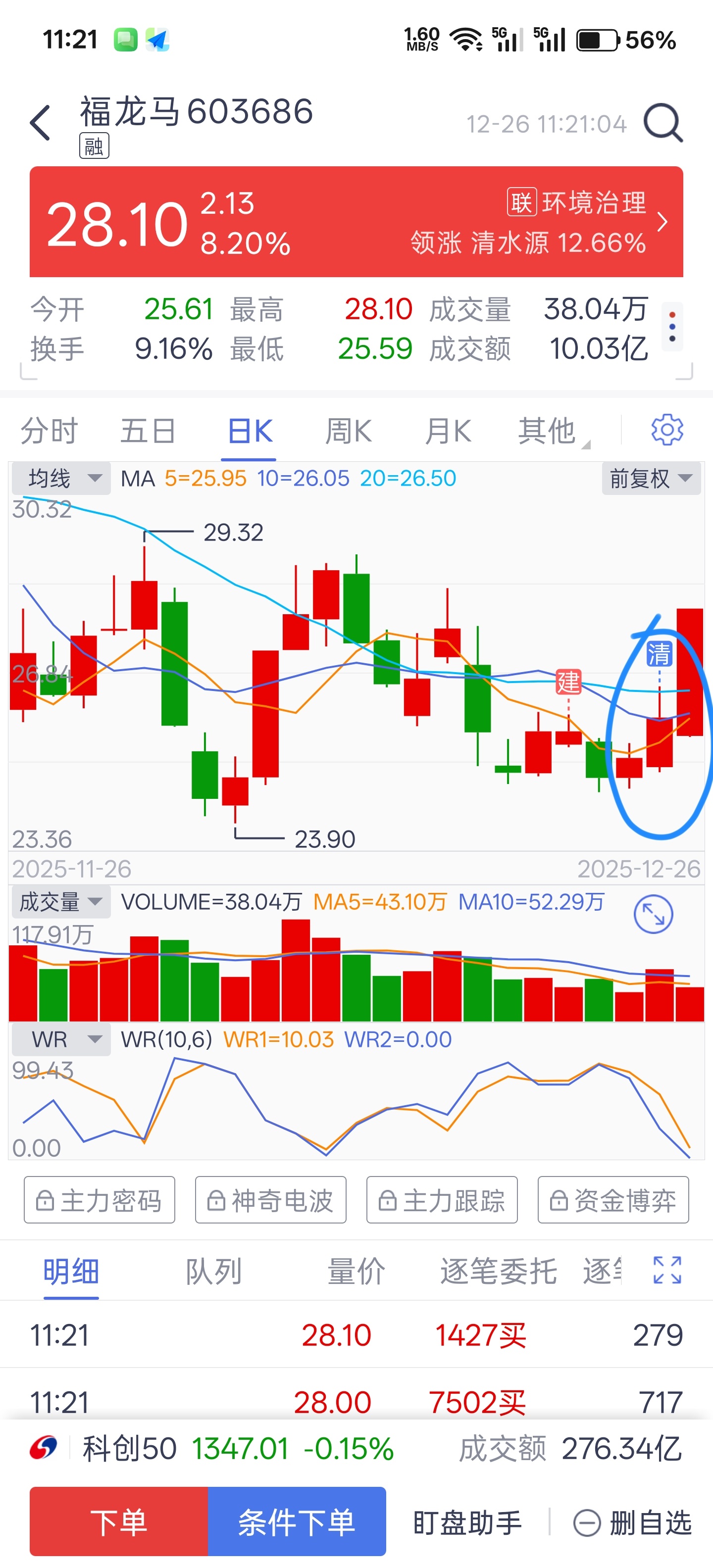 $福龙马(SH603686)$ 我卖了了你就涨停