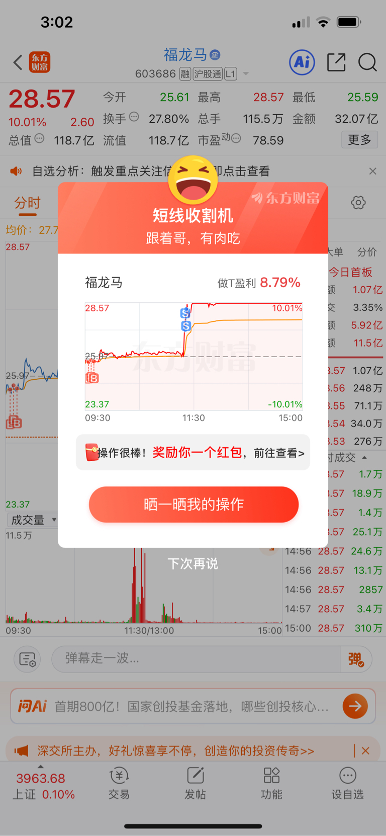 $福龙马(SH603686)$ 血灵灵的教训!早上挂涨停卖然后睡着了!居然差0.几!天塌了!起床剩点汤!