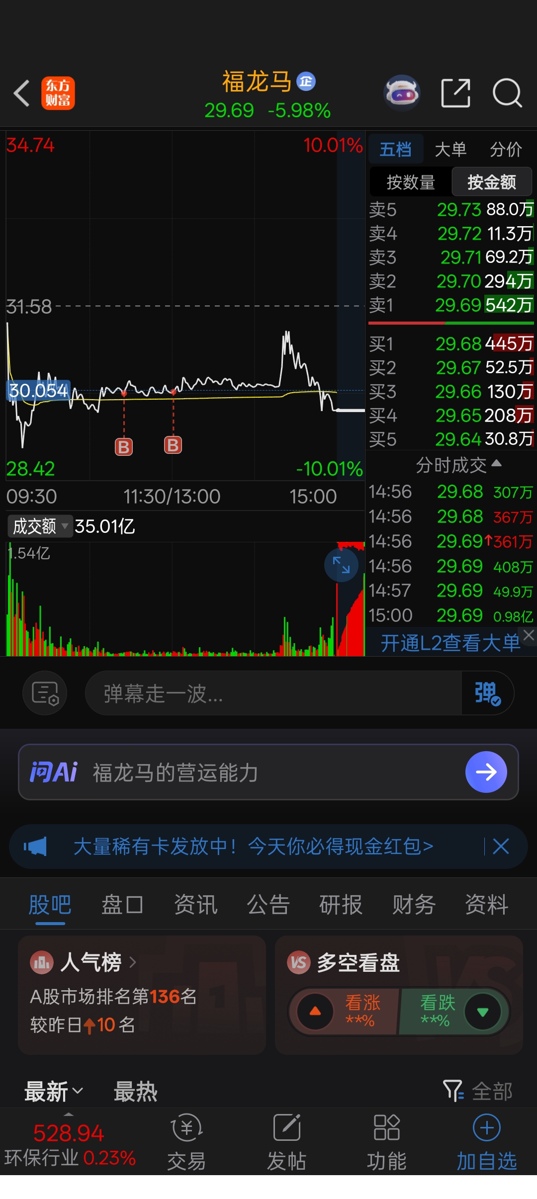 $福龙马(SH603686)$ 各位韭友,莫要惊慌,近几日,每日成交几十亿,不可能A下去,最坏的结果莫过于震荡罢了,据本道推演,下周一会沿着月线高开上涨,不排除涨停,具体涨停原因主力早已替各位韭友找好,安心吃肉即可,,,