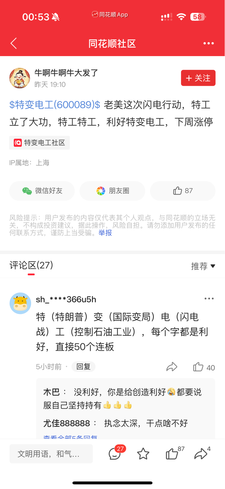 温馨提示: 1.根据《证券法》规定,禁止编造、传播虚假信息或者误导性信息,扰乱证券市场;2.用户在本社区发表的所有资料、言论等仅代表个人观点,与本网站立场无关,不对您构成任何投资建议。用户应基于自己的独立判断,自行决定证券投资并承担相应风险。《东方财富社区管理规定》