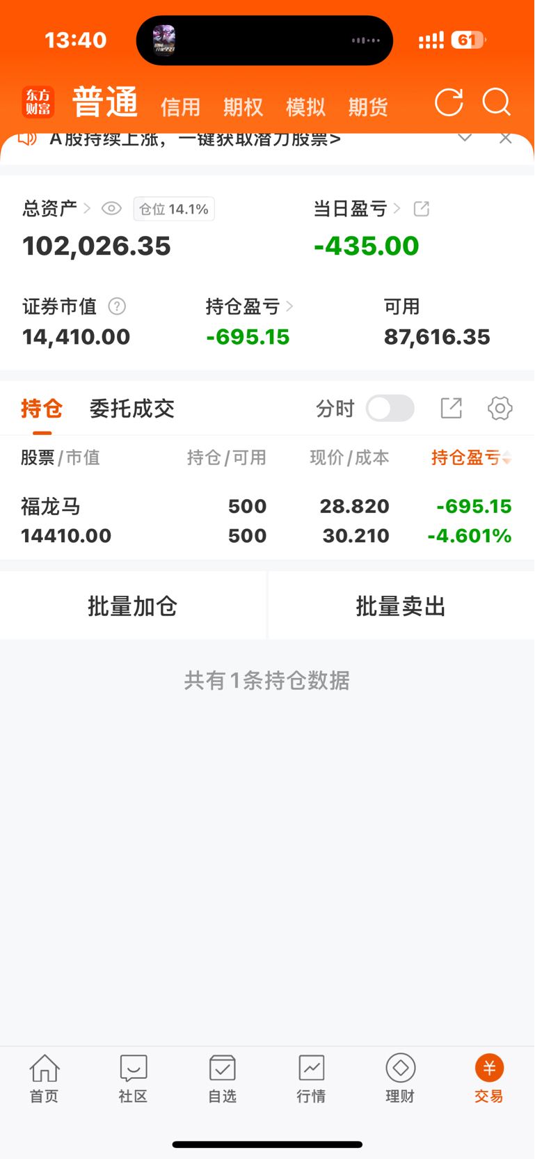 $福龙马(SH603686)$ 妈的,有人打电话给我叫我买的,说55分,还好没买多,大爷
