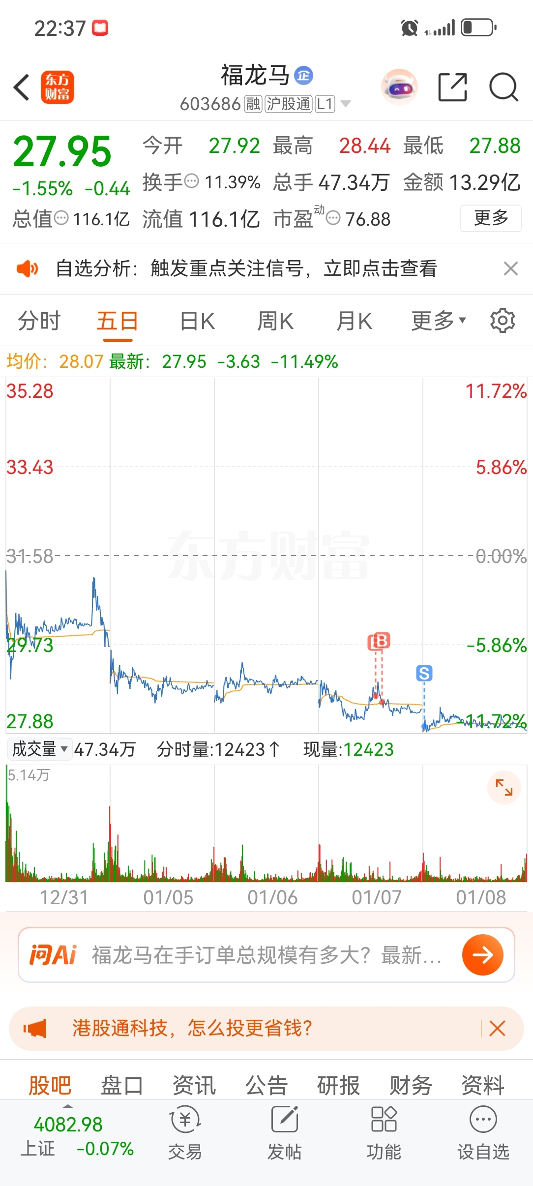 $福龙马(SH603686)$ 以后不瞎操作了