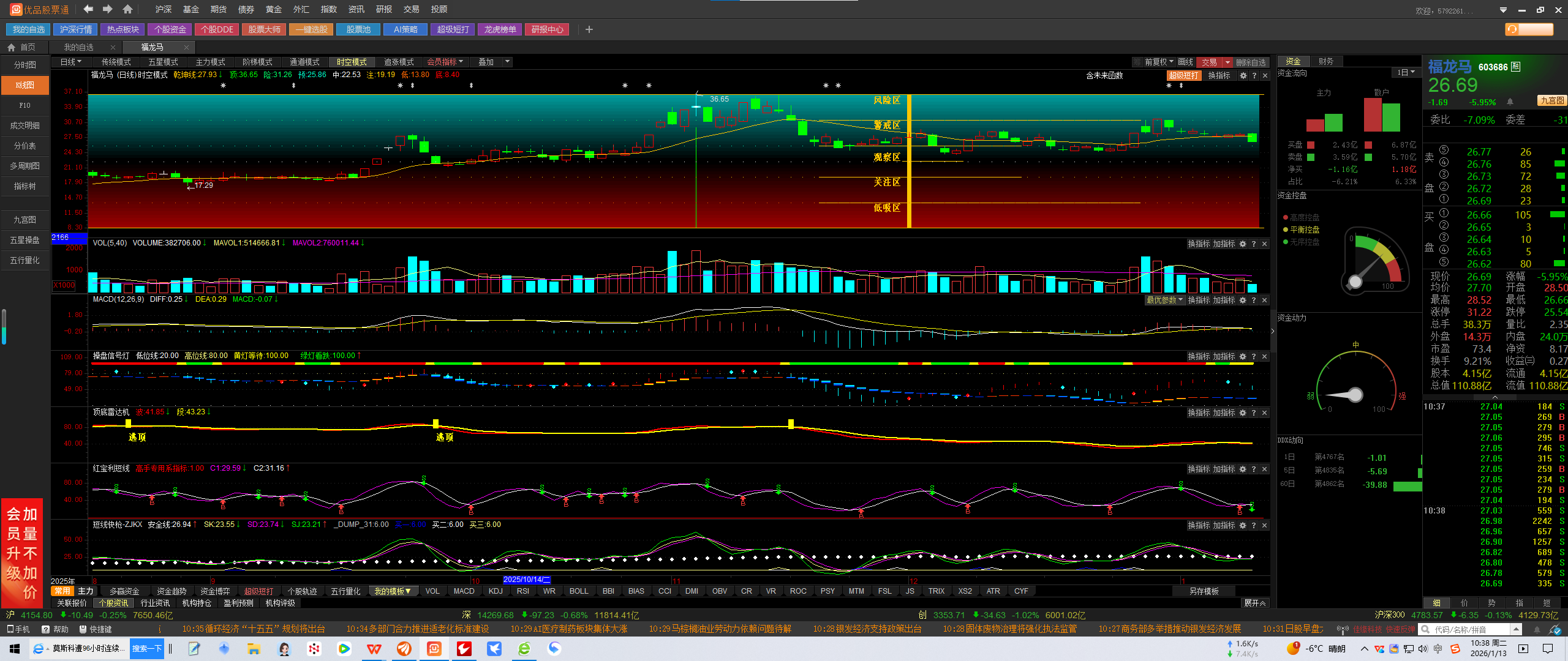 对“福龙马”得重新看了。它目前的表现已经说不清楚。按说大盘猛拉的时候它不动,震荡