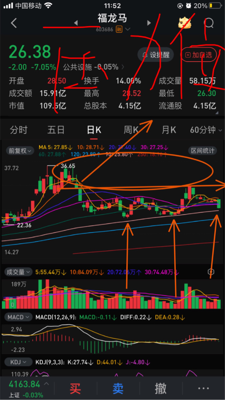 $福龙马(SH603686)$ 有人问,我就说下!这股第一支撑位25.8。目前属于一个中阶段没上的整理,就是上次涨到前期高位的中间段没上,再次做了一个回调,可参照上一次底,来回俯卧撑,还有机会上30。