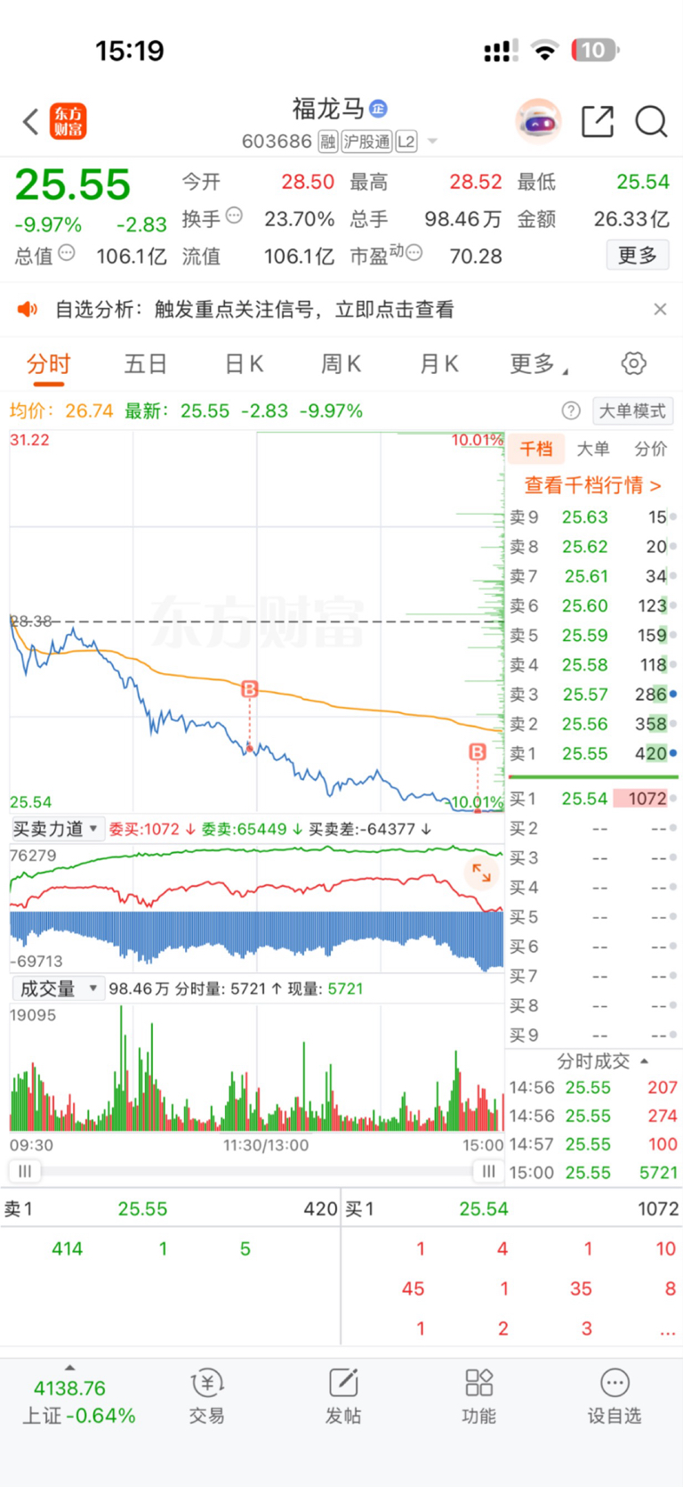 $福龙马(SH603686)$ 不是今天抓了2个涨停,不然今天非得绿了