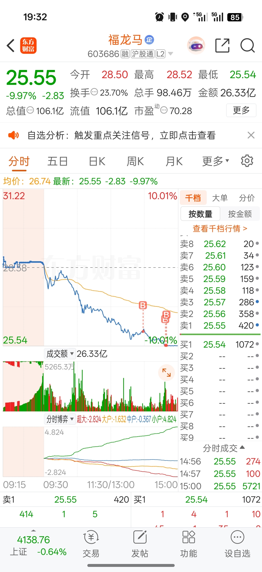 建仓福龙马,希望明天主力拉高,兄弟们一起吃肉。