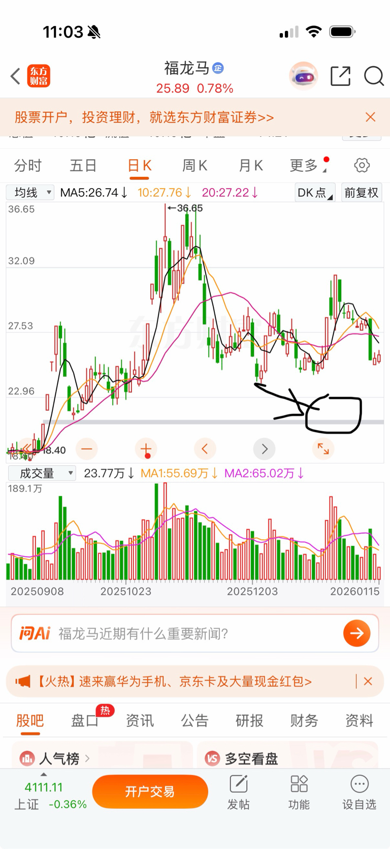 $福龙马(SH603686)$ 趁着指数大跌,向压找支撑,早一天晚一天的事