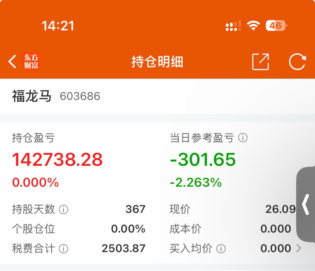 持仓整整一年,感恩福龙马,清仓走了,留个纪念