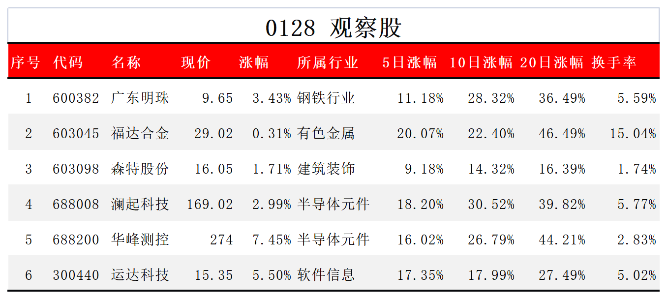今天观察股半导体股澜起科技、华峰测控,有色福达合金以及其他符合条件的个股。华峰测控:预计2025年净利同比增长46%-78%,全球半导体行业回暖,AI及高性能计算需求爆发,国产替代加速,公司紧抓机遇,拓展高端市场,提升产品市占率与客户覆盖度,实现盈利显著增长。