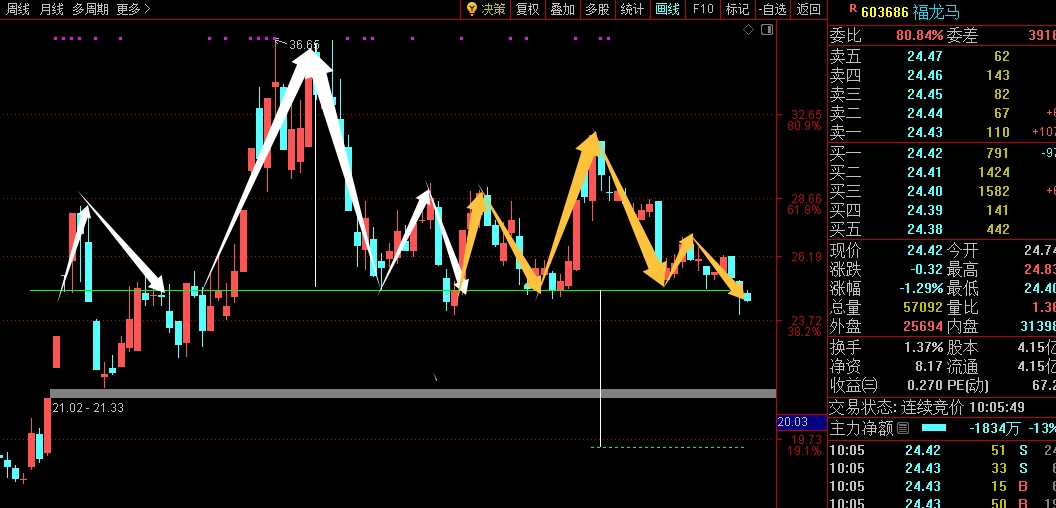 $福龙马(SH603686)$ 双俩头肩顶,跌破20再来