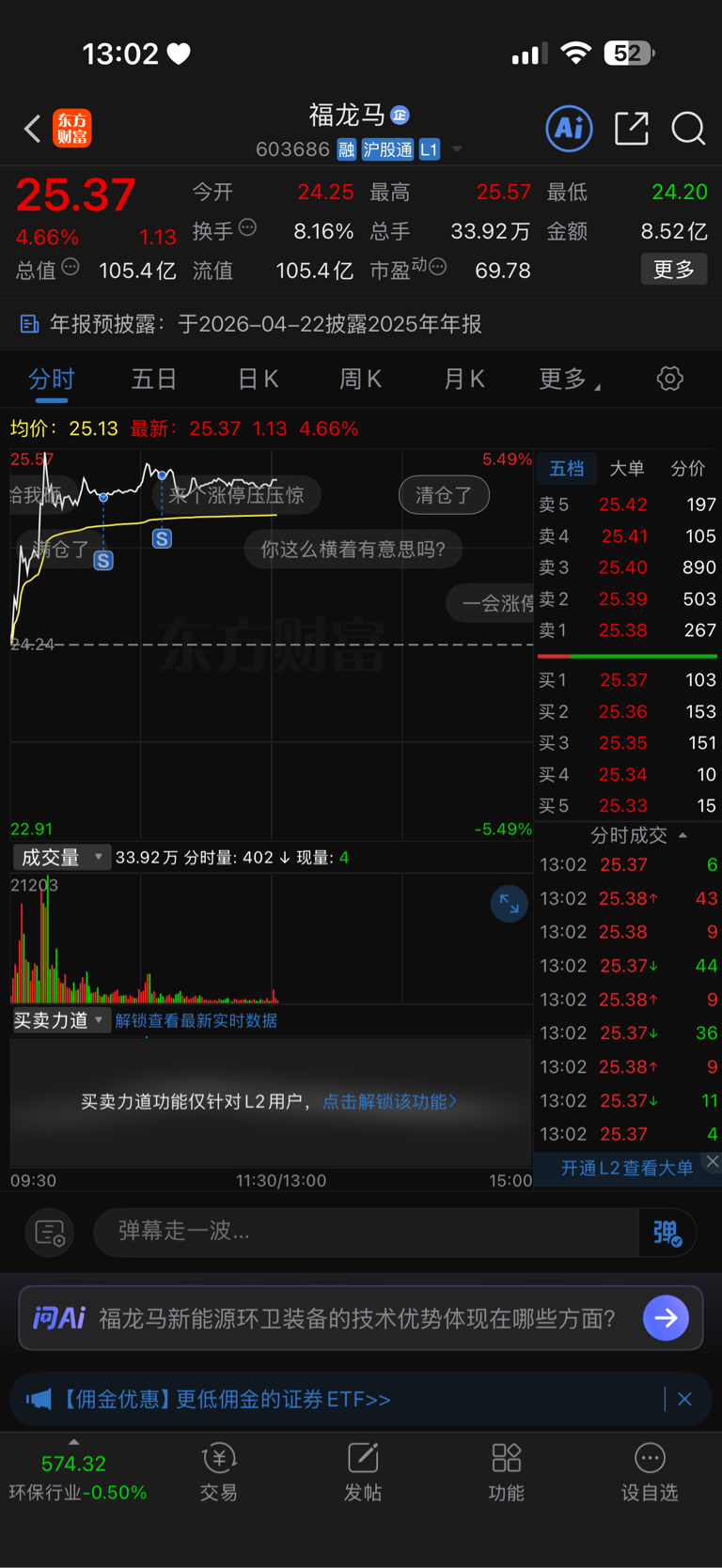 $福龙马(SH603686)$ 回本小赚,一清仓