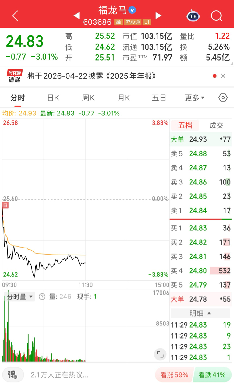 $福龙马(SH603686)$ 求求主力节前拉一拉