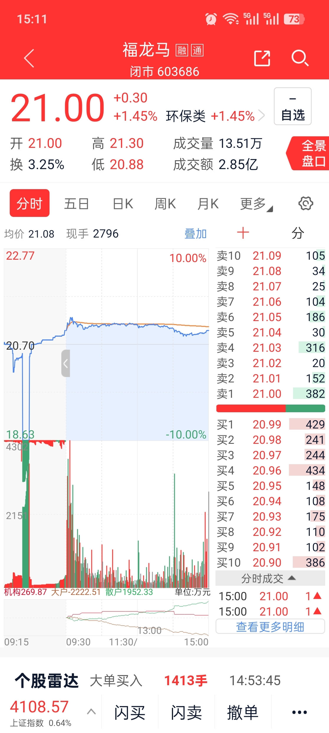 $福龙马(SH603686)$ 勾庄真会玩,集合竞价跌停,你怎么还红了?天天流出,明天继续,等你18.4