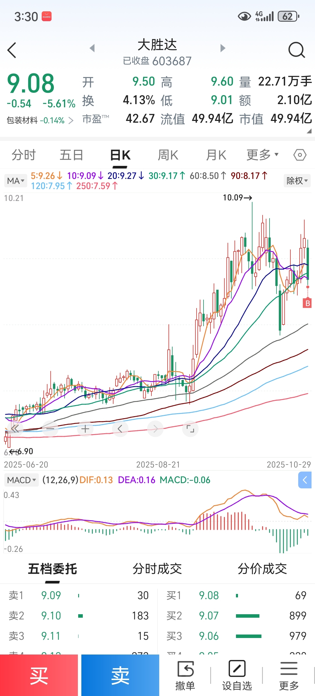 $大胜达(SH603687)$  今天是洗盘别问为什么