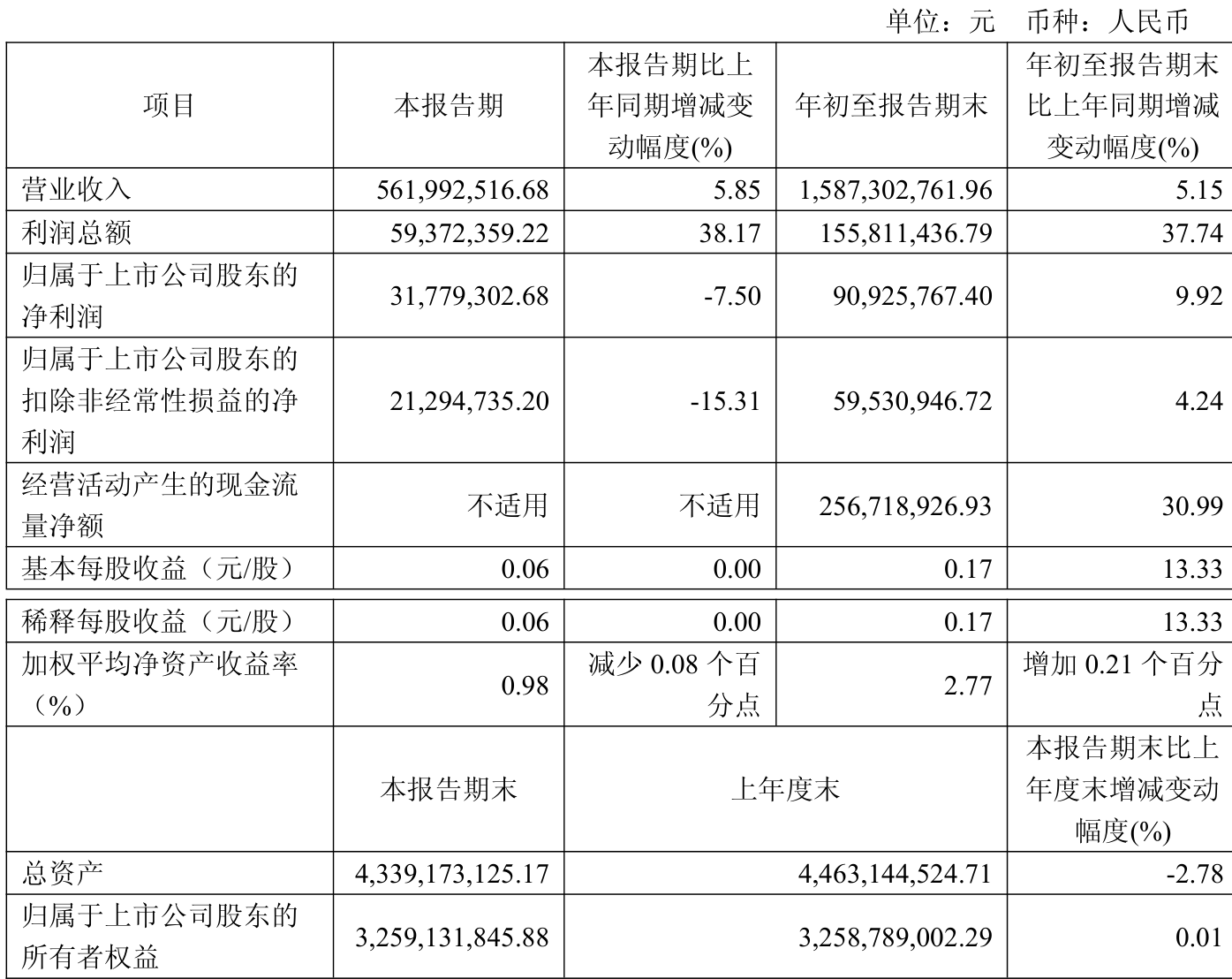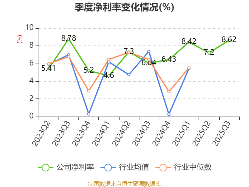 2025年前三季度,公司流动比率为3.09,速动比率为2.55。