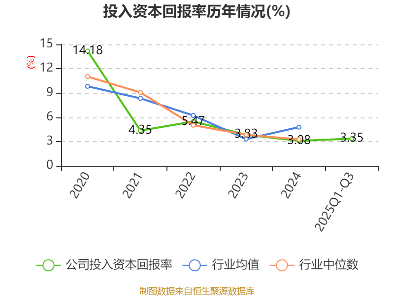 盈利能力方面, 2025年前三季度公司加权平均净资产收益率为2.77%,同比上升0.21个百分点。公司2025年前三季度投入资本回报率为3.35%,较上年同期上升1.27个百分点。