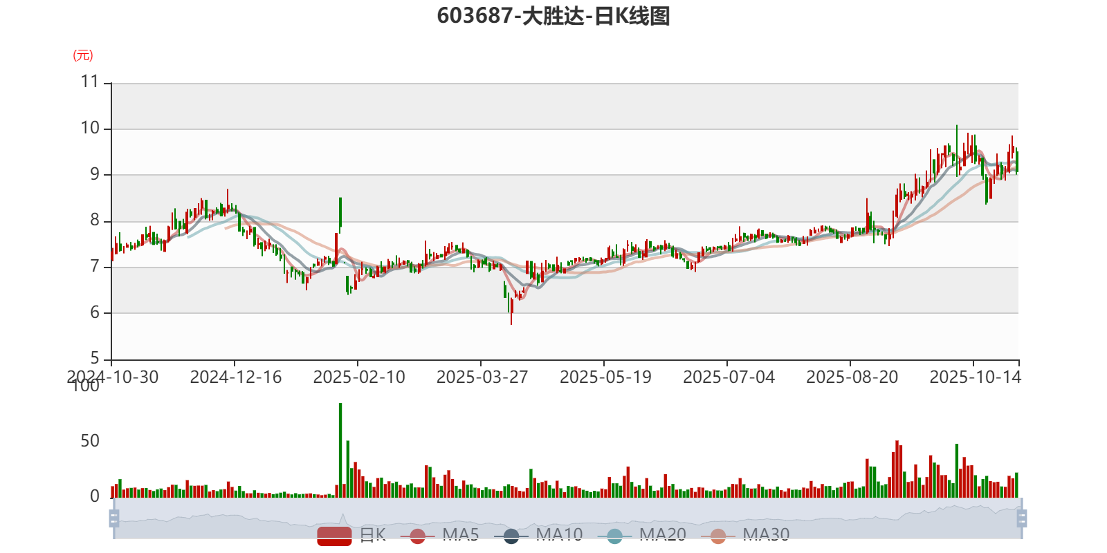 以10月29日收盘价计算,大胜达目前市盈率(TTM)约为43.63倍,市净率(LF)约1.53倍,市销率(TTM)约2.26倍。