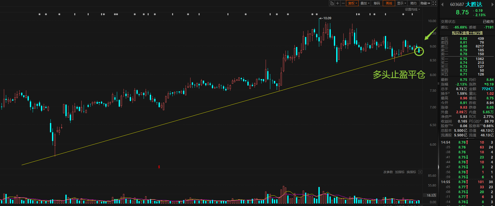 跟势交易今日下穿,也是多头做一个平仓止盈动作