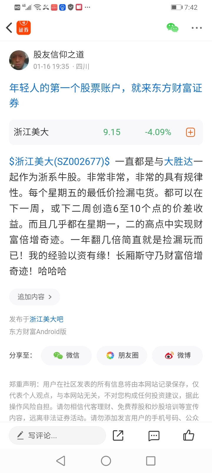 温馨提示: 1.根据《证券法》规定,禁止编造、传播虚假信息或者误导性信息,扰乱证券市场;2.用户在本社区发表的所有资料、言论等仅代表个人观点,与本网站立场无关,不对您构成任何投资建议。用户应基于自己的独立判断,自行决定证券投资并承担相应风险。《东方财富社区管理规定》