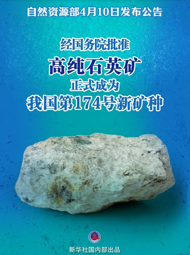 经国务院批准,高纯石英矿成为我国第174号新矿种