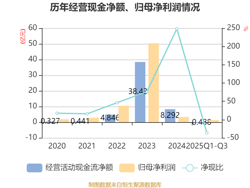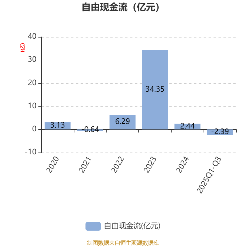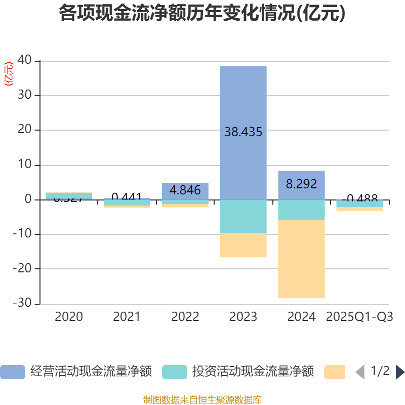 2025年前三季度,公司经营活动现金流净额为-4878.49万元,同比减少7.86亿元;筹资活动现金流净额-1.02亿元,同比增加18.03亿元;投资活动现金流净额-1.74亿元,上年同期为-4.54亿元。