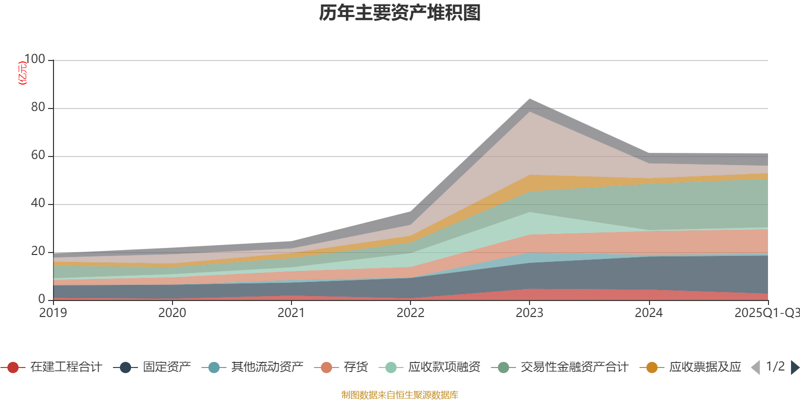 资产重大变化方面,截至2025年三季度末,公司货币资金较上年末减少49.65%,占公司总资产比重下降4.98个百分点;固定资产较上年末增加15.12%,占公司总资产比重上升3.48个百分点;在建工程合计较上年末减少38.25%,占公司总资产比重下降2.67个百分点;交易性金融资产合计较上年末增加5.17%,占公司总资产比重上升1.73个百分点。