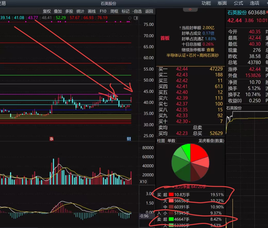 $石英股份(SH603688)$ 在 43.77 上方不买只看热闹或直接删除也可,坚持买阴不买阳, 在 41.08 有一定支撑,不有效跌破就买,跌破就不买,这是纪律坚决执行。宁可错过也不犯错!!!它在主图最上方显示上方的阻力位依次有 43.77 48.41 52.29 等,哪里冲不过就在哪里出!只希望他在回踩 不跌破时买进,跌破千万不要买!这是纪律!有资金进去的不怕他跌,怕他不跌,跌才有机会,坚持不追涨原则。天天有股选何必去追涨呢。如果跌破 则可能向下到 等等下面的就不说了,不严格扏行止损纪律就同样可以向下计算出万丈深渊!任何指标不可能单独起作用,维一有用的是(坚持止盈止损:)这是血的教训!!!就是说我计算的某个点位明显冲不过去就要止盈!某个点位明显支撑不住就要止损!但是这点非常难做到非常难执行,我自己也好多次做不到,教训深刻[流泪][流泪][流泪] 所选个股都是只做两叁天,原则是次日不涨停就抛换一个做,超级短线! 现在有个做得很红火选股器广告,说如果本金10万每天赚1%,250个交易日可以做到400万元,这是广告,广告没有一个是真的因为实盘做不到每天赚1%.但要树立超级短线的理念。我同样做不到但升级后的选股器超级短线成功率相当高了! 25年元月1号起选股业绩是1号选的海德控制7↗连板,9号选的金奥博7连板,9号选的苏豪弘业6连板,27号再次选的杭钢股份开年七连板,2月5号选的浙数文化六连板了,6号选的新时达7号可买随后停牌复牌后将近7个一字板。3月14号选的中科云网和皇氏集团贝因美及金发拉比4个板,贝因美3连板了。由于修改方案专门选小阴小阳的很久没选出来涨停板的了,4月24号选的宇晶科技25号阴线开盘随后板了,5月8号收盘后选的河化股份9号平开随后涨停。6月11号上午10点钟选的天安新材当时才涨4个点,随后不久涨停,6月16号上午选的创新医疗当天才涨4点多17号涨停!19号晚上选的强力新材20号涨20%!6月25号中午12点多钟选的华媒控股当时没涨次日午后涨停! 122个交易日76个10%。理论上7个10%就翻倍!有些连板股次日不给机会上车但说明我的选股方案非常好!我这个股市神枪手值得关注! 优化升级后的人工智能选股大数据模型选出来的,多数是小阴小阳的这种涨的慢但安全要有耐心,有些是已经涨停板了的当天买不到,只能等次日回调不跌破我计算的某个关键点位时买入,跌破了的千万不要买!这是纪律。注意买后有赚就可以,赚了就跑,快进快出,模拟手动量化交易。 这个免费选股器隔三差五总能选出连板飚升股,效果非常好!虽然还是不能百分百准确,但网上能够经得起公开验证的不多见,比网上任何高价昂贵的软件强百倍,而且我这个是免费。可以查查我24年8月19号收盘后选的常山北明的帖子,从6.23最高涨到11月1号39.88翻了5.4倍!其他连板飚升股太多了懒得统计!网上那些大w虽然粉丝多但只讲板块和指数,那是放空炮!没有实际意义,其实际操作水平经不起个股的验证!买什么买哪个我直接点对点精准出击。不要浪费时间看大w的。 总是有些没有修养的喷子喷人,我会拉黑永久屏蔽他,这些点位对已经持有的人有很大提示参考价值。 我画的这些彩色横线是我自己研究了多年才得出的,每根横线处股价有效冲过了就是支撑,冲不过就是阻力,是我的独自研究的,很准的。请仔细看照片,也请你自己同时在你自己电脑行情软件上我说的那几个价位上画横线,可以看见已经走过来的历史很清楚地展示出来了支撑和压力,未来也同样,所以要重视这些彩色横线所指价位或者主图最上方标注的价位!不要听那些大W大砖家的!不要听他们耍嘴皮子!更不要看他们耍笔杆子! 超级短线票不要指望一步就涨好几个价位,有壹两个价位就够了,通常赚1个价位即1个台阶就走,当然能碰到连板股更好,但不强求,坚定只做超级短线理念!赚了钱就跑, 选出1个股票还没有买就先告诉你哪几个价位是阻力,在哪根彩色横线冲不过就要抛出,这是全市场人 士没有的!任何股评师无法企及不是这个档次,不要看均线金叉才买入出金叉后就已经涨上来好几个点了,也不要等死叉才卖出,死叉后就已经跌了好几个点少赚几个点了,只要看我计算的点位,哪里冲不过就在哪里抛,就抛在了高位! 智能选股大数据模型就是程序化选股,程序是固定的相同的,所以你们看到我的文章只有股票名称和价格不一样。 所选个股还做不到百分百成功,还需要各位再全方位精选,我的只是参考 。 长文里有些话是我以前失败教训的总结,要重视!并且提示关键点位后难点在执行力,比如某个点位明显冲不过或撑不起来一定要抛的时候,却犹豫不决错失良机。所以要磨练执行力! 欢迎关注不关注就不能及时了解我的新选个股动态。粉丝多少对我无所谓,如果不关注,对你可能少了一个提示你抓发财机会的朋友。对你可能少了一个提请你抓飚涨个股的朋友,我这个股市义工朋友值得信赖!!! 如果赞成我对某个股的观点请在(评论)栏发个笑脸或花朵,不要(点赞)!!!因为(点赞)不能更新帖子在股吧的排序和顶帖,犹其是已经持有的人多顶帖是在为你自己拉人气。 我的股友不是几百几千个,而是几万个,他们都是经历过返复对我考察后才接受我的,几万个聪明绝顶铁粉的信任,我必须诚心相待才对得起朋友!尽量尽力做好股市义工!是你们的信任让我的努力变得更有意义!让我们一起在股市共创辉煌共同发财!!!