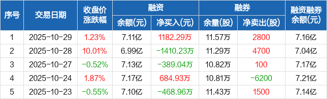 石英股份:融资净买入1182.29万元,融资余额7.11亿元(10-29)