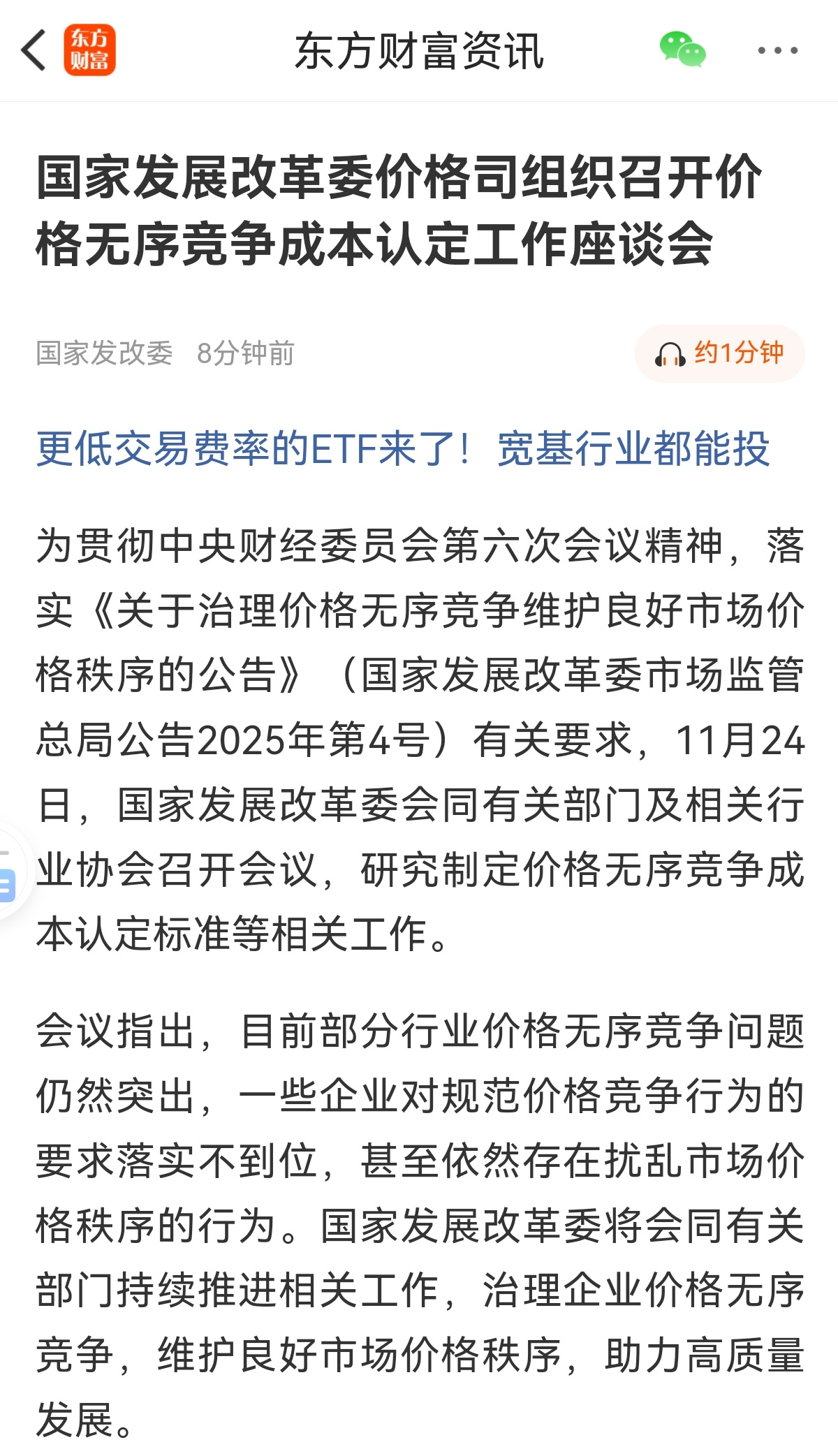 国家发展改革委价格司组织召开价格无序竞争成本认定工作座谈会。等待去库存,价格回升。