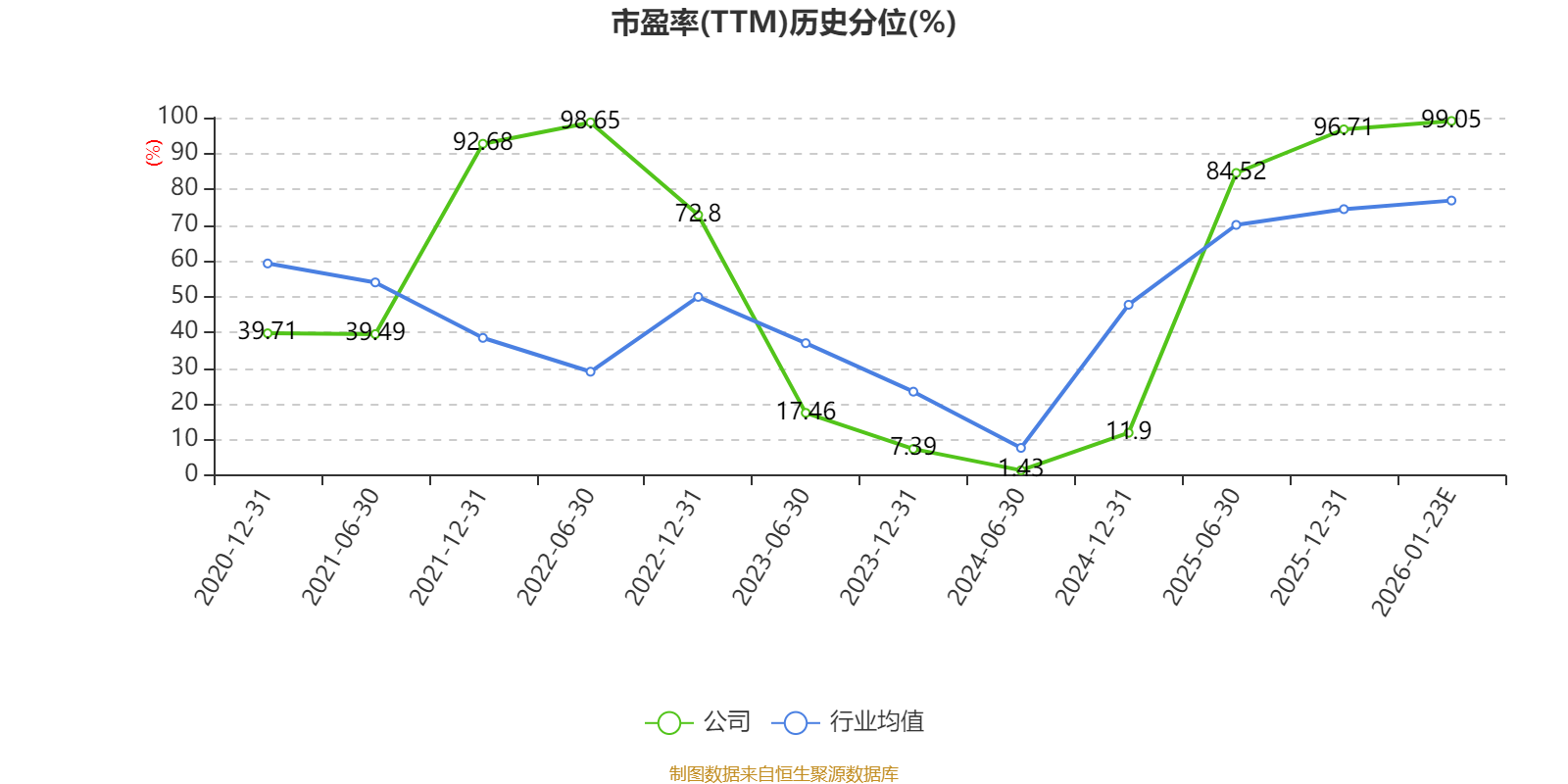 以本次披露业绩预告均值计算,公司近年市盈率(TTM)图如下所示: