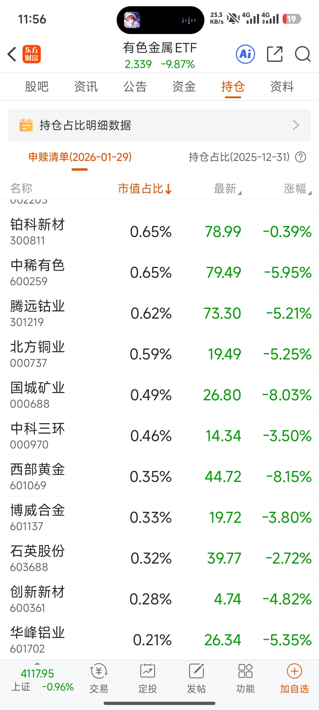 大伙都没懂大跌的逻辑,我这里给你们指出来了,有色etf成分股包含石英股份