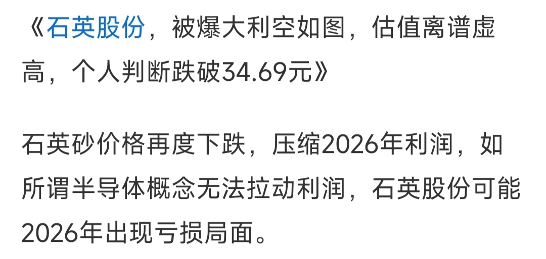 《石英股份,再曝利空消息,原材料价格大跌,可能导致2026年净利润巨亏》