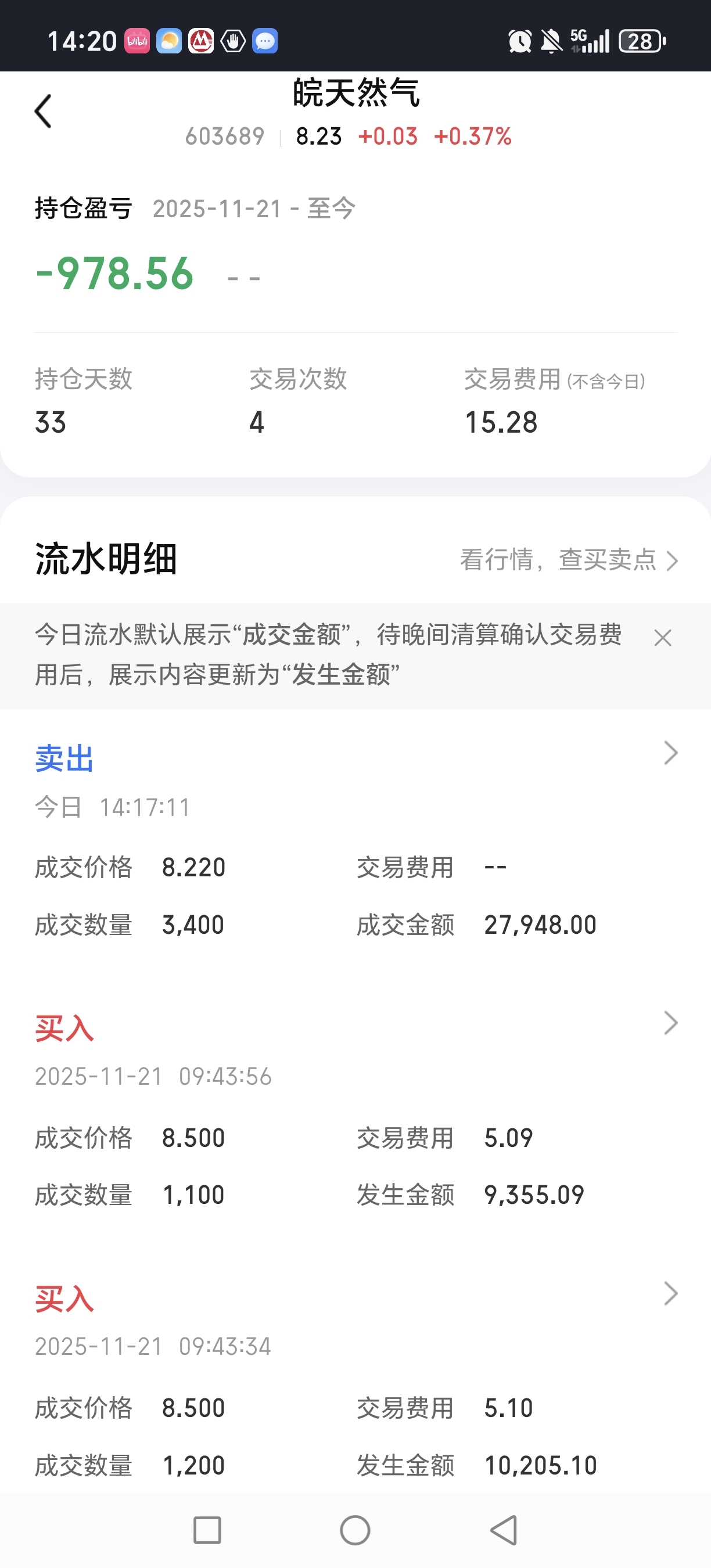 $皖天然气(SH603689)$ 我走了,留下的发财,马上过年了需要用钱,没办法了