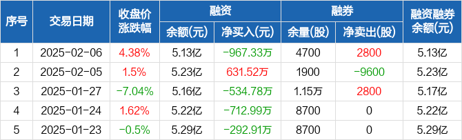 至纯科技:融资净偿还967.33万元,融资余额5.13亿元(02-06)