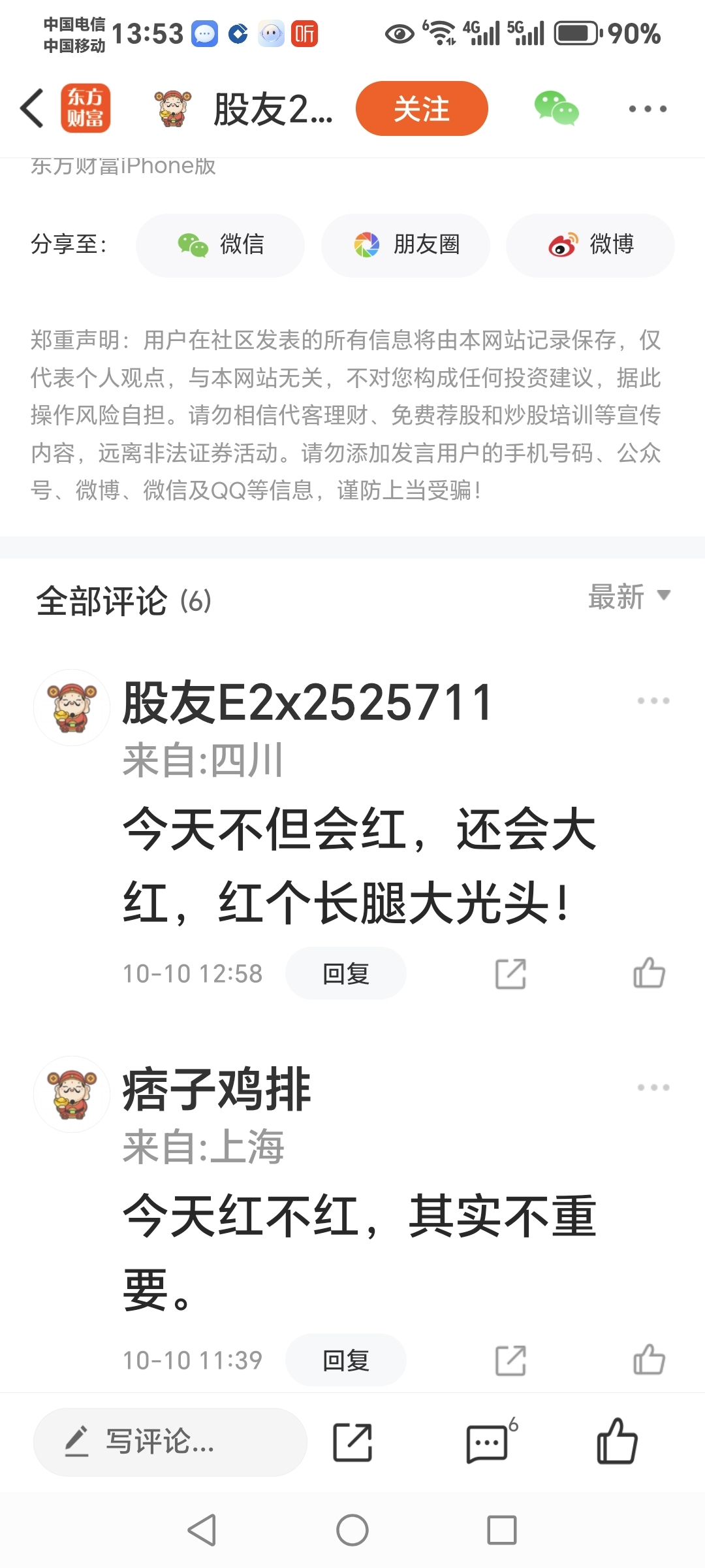 温馨提示: 1.根据《证券法》规定,禁止编造、传播虚假信息或者误导性信息,扰乱证券市场;2.用户在本社区发表的所有资料、言论等仅代表个人观点,与本网站立场无关,不对您构成任何投资建议。用户应基于自己的独立判断,自行决定证券投资并承担相应风险。《东方财富社区管理规定》