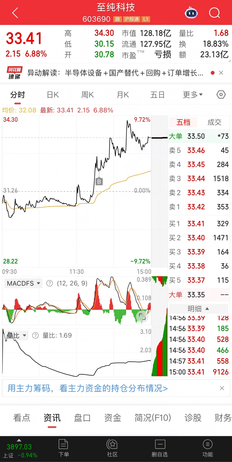 $至纯科技(SH603690)$ 就这一只了,明天九点半看#炒股日记# #强势机会# #实盘记录#