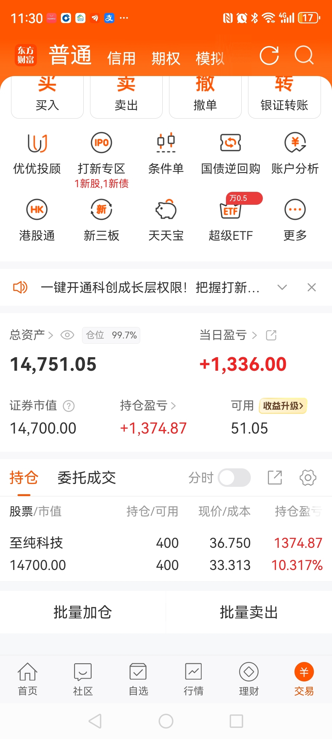 一万入市的第13天。干就完了