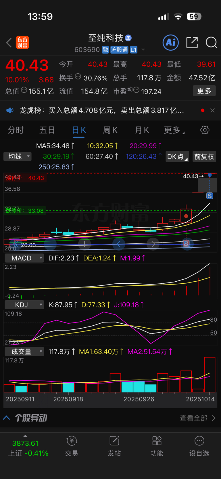 $至纯科技(SH603690)$ 卖飞了 留下的发财