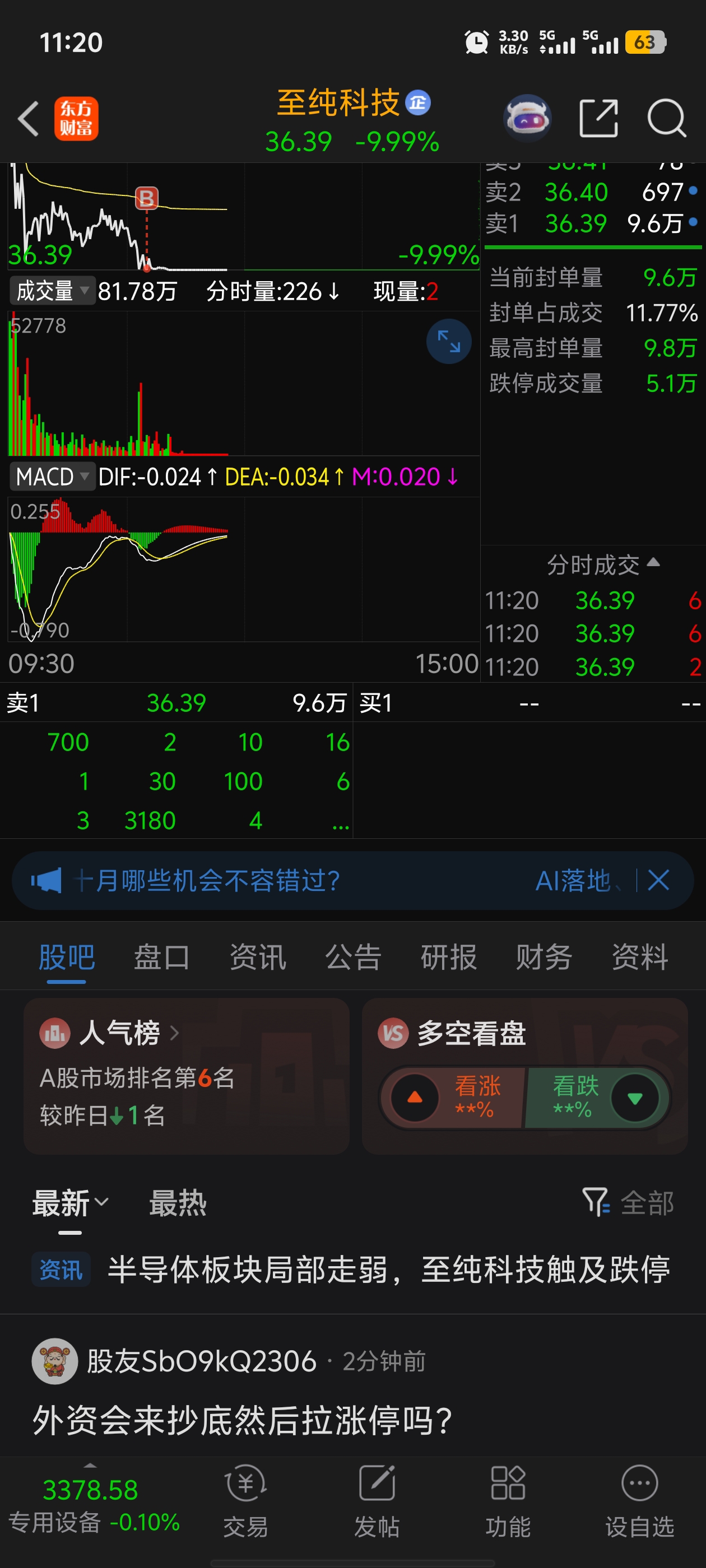 怎么没有人来翘板呢?我不相信一买就跌,最起码今天不会再跌了。