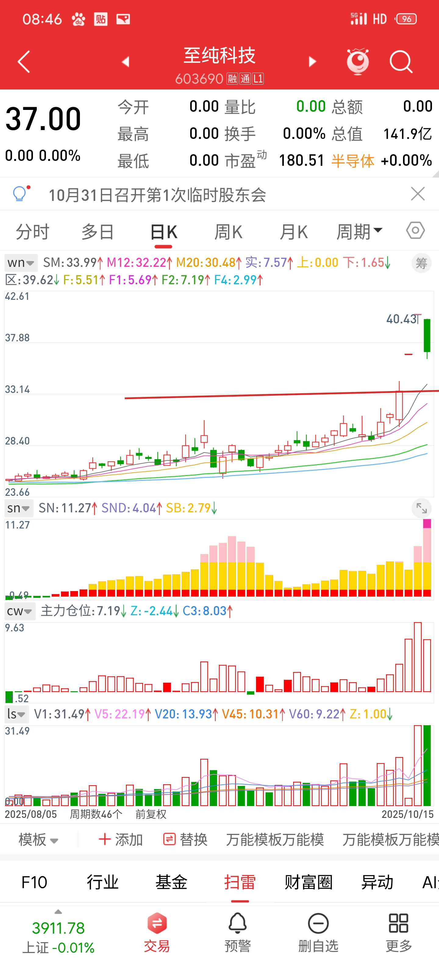 $至纯科技(SH603690)$ 能地板进最好,到不了地板可以在横线处或者M12处建仓。